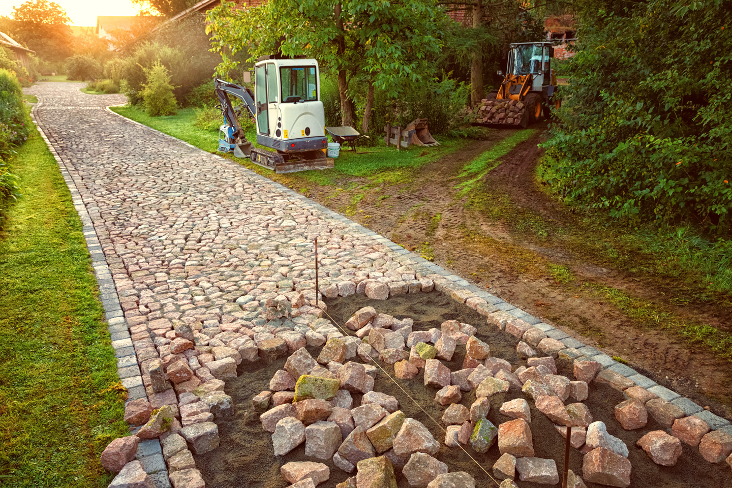 Befestigung von Hof- und Garagenzufahrten mit Verbundsteinpflaster sowie Gestaltung von Aussenanlagen.